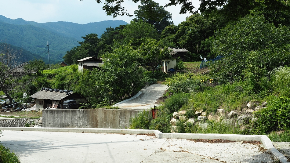 이곳 개울가에 집들이 모여살고 있었는데 큰 홍수로 집도 떠내려가고 인명 피해도 있어 동네 전체를 아랫쪽 개울 위로 이주를 했답니다.