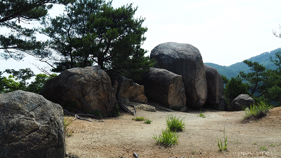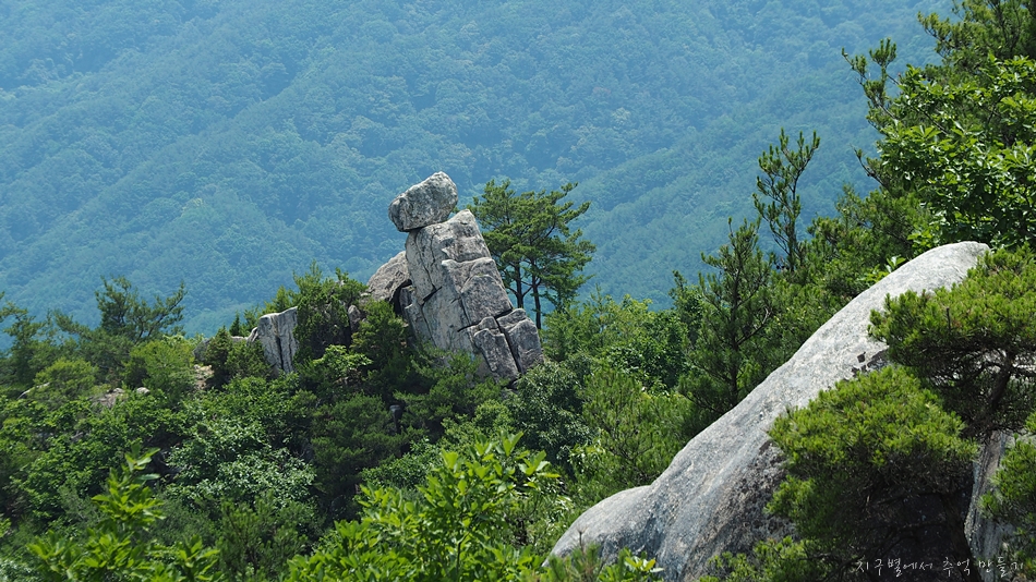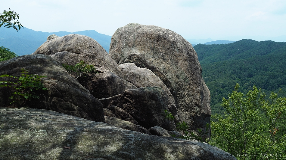 월여산 오르다 보면 중간에 등산로를 벗어난 곳으로 만물상 바위가 보이는데 저곳으로 내려가서 사진 놀이하기 좋은 곳입니다.