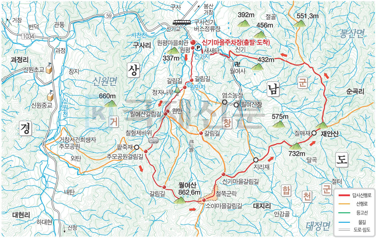 월여산 산행지도
