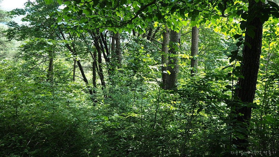 커다란 느티나무를 두 그루 지나고 계곡을 낀 외길 임도를 따라 곧장 올라가면 됩니다.