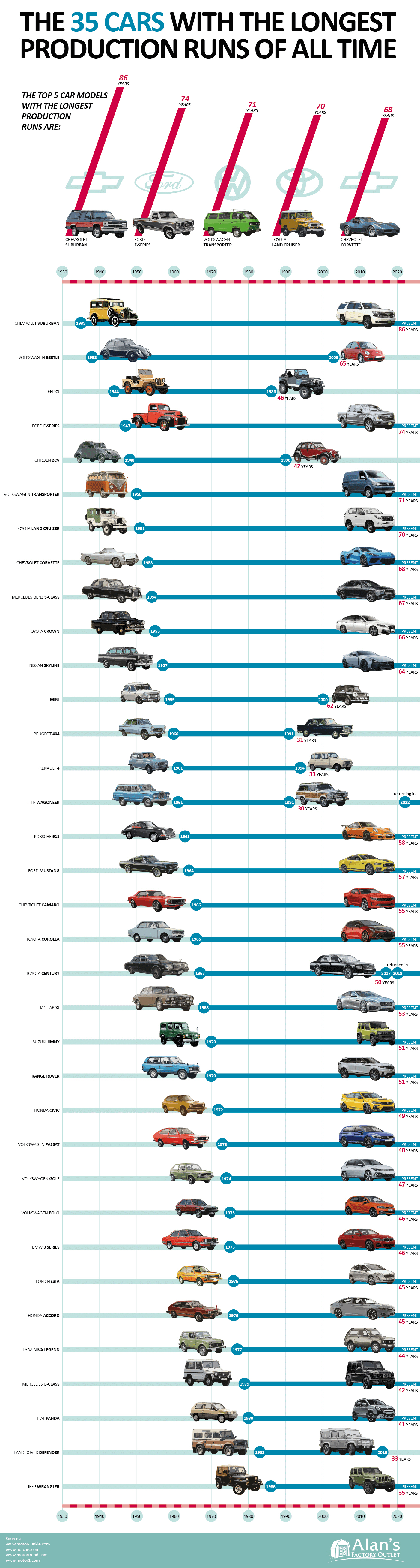 세계 자동차 역사에서 가장 롱런한 자동차 35종