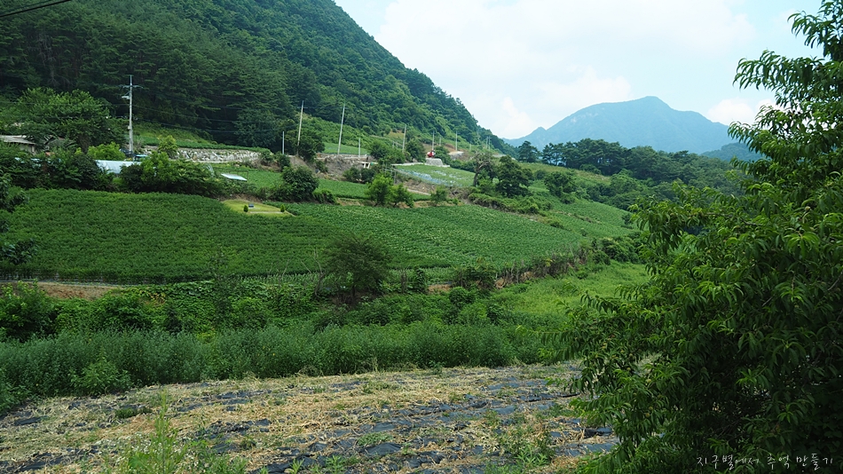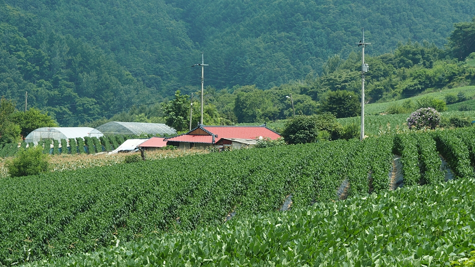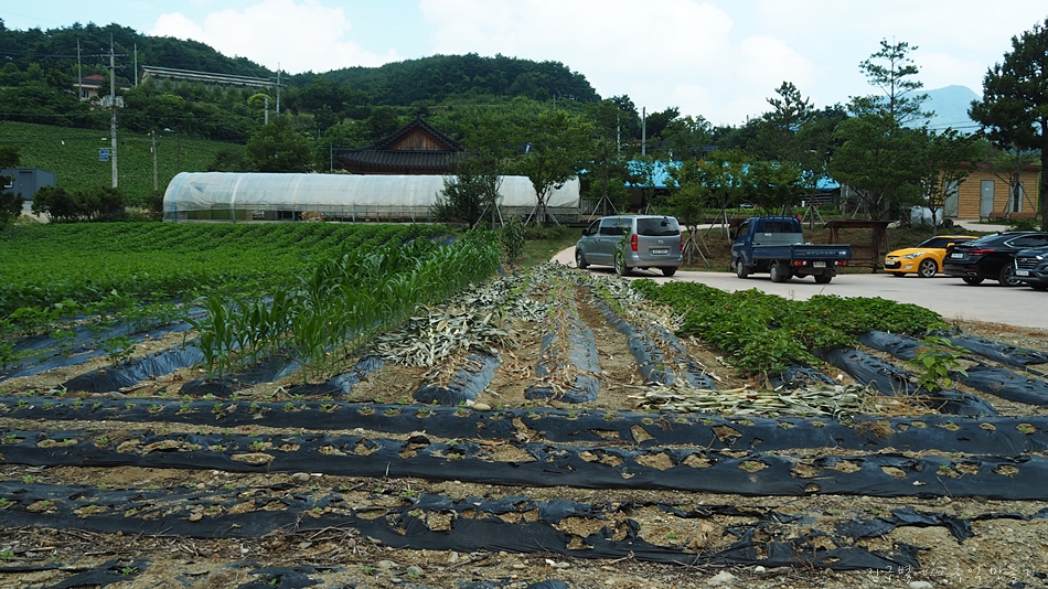 교행이 불가능한 곳이라 한쪽 밭가로 바짝 붙여서 세웠습니다.