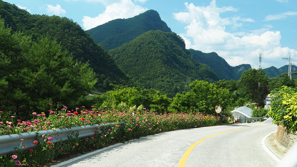 산을 거의 하나 넘어가는 좁은 도로가 꼬불꼬불 이어지네요.