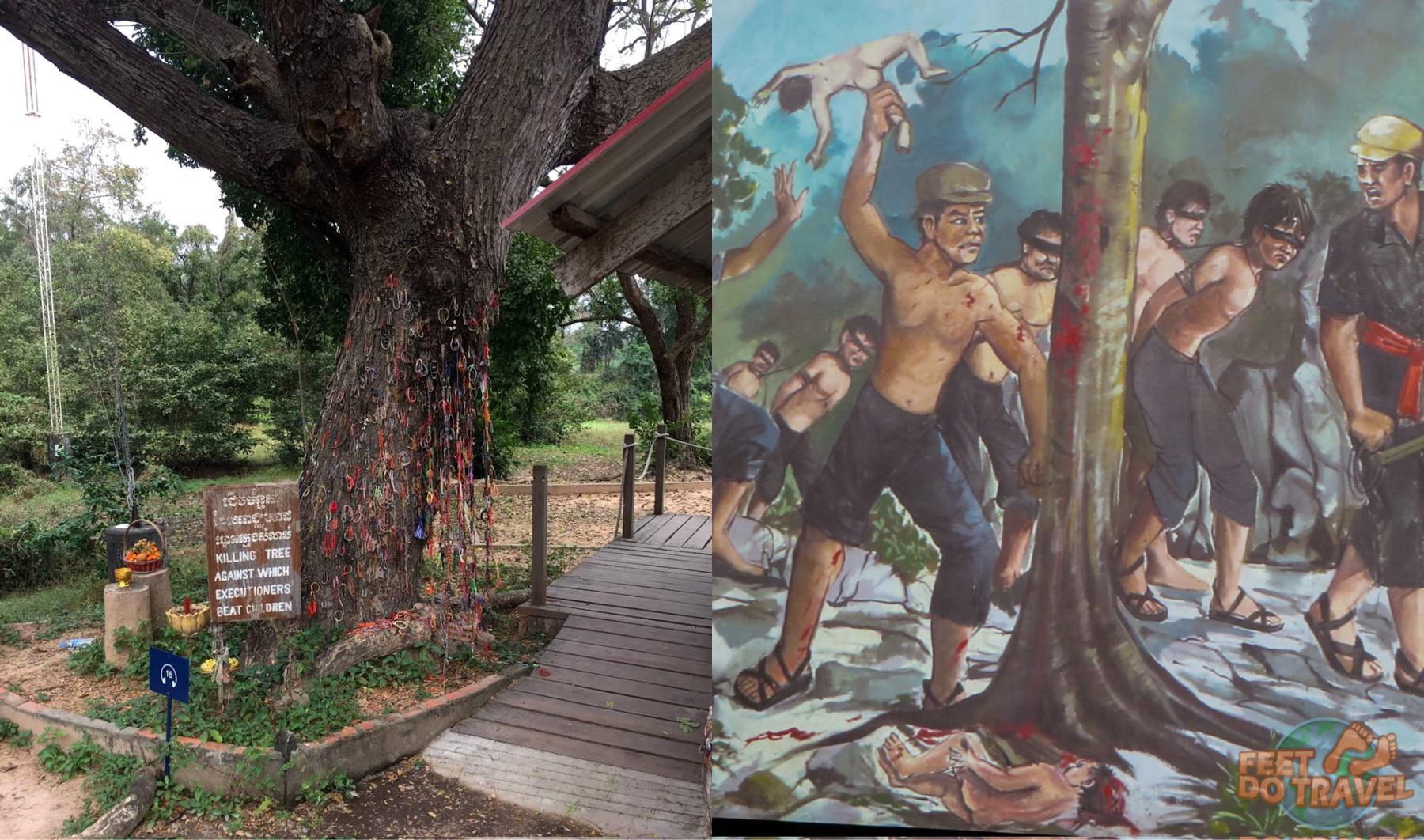 과거 크메르 루즈 학살 당시 이 나무는 수감자의 아기와 아이들을 처형하는 장소로 사용되었습니다.