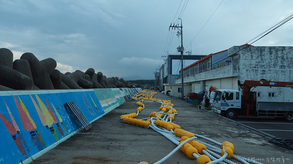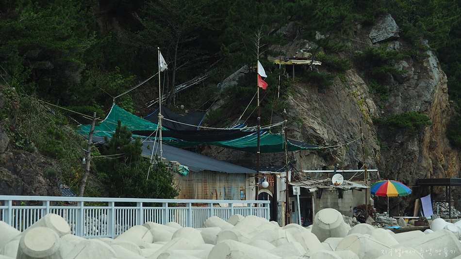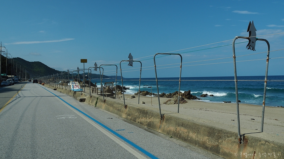 바닷가의 시설물들은 장식품 비슷하게 보이지만 사실 수레미(오징어)나 괴기 말리는 기구입니다.