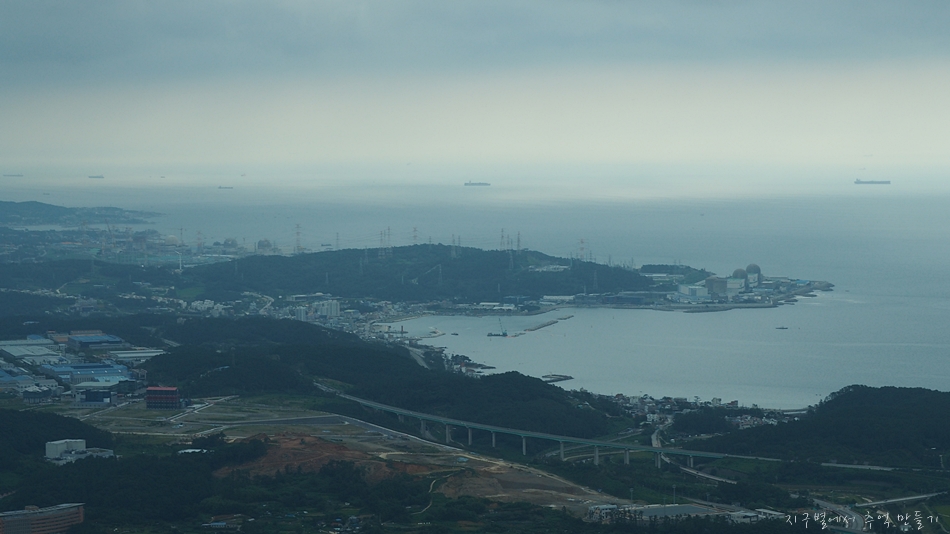 우측으로 동해 바다. 임랑해변이 보이고 그 뒤로 원자력발전소도 보입니다.