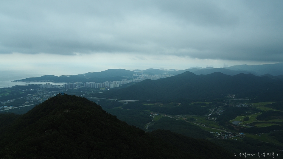 남쪽으로는 월음산(月陰山) 능선과 이어지고 동쪽으로는 동해의 해안선이 아주 길게 조망됩니다.