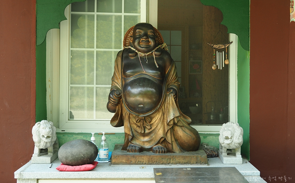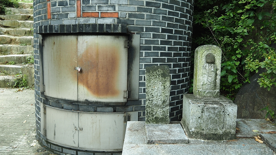 천도제 후 영가의 옷가지를 태우는 곳 옆에 모셔진 작은 부처님.