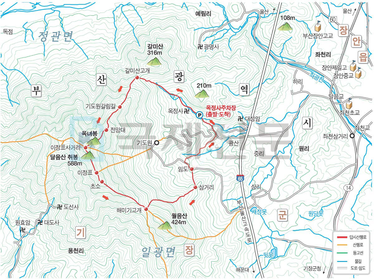 국제신문 등산지도인데 하산길은 제가 내려온 길로 수정하여 두었습니다.