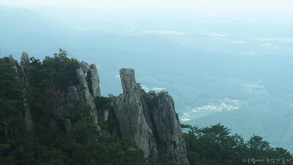 정상에는 주상절리로 형성된 주봉인 취봉과 바로 옆에 삐쭉삐쭉 솟은 바위로 형성된 옥녀봉이 있고 이 두곳이 산의 전체 분위기를 대표합니다.