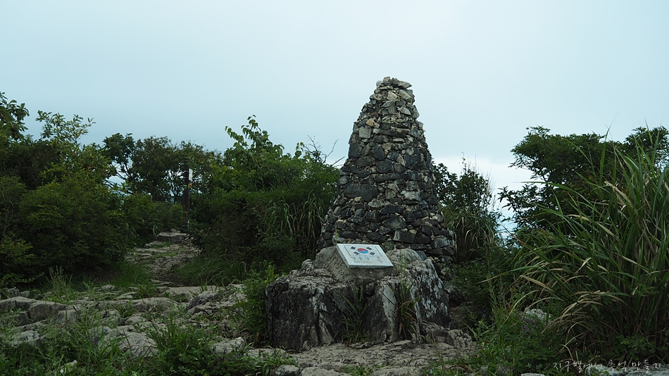 정상 한켠에는 돌탑과 태극기가 설치되어 있구요.