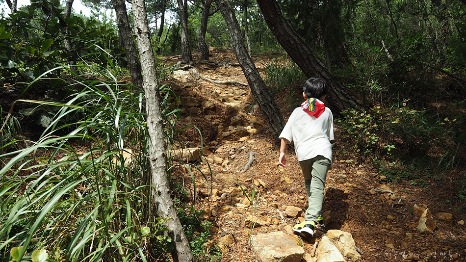 근간에 비가 많이 내려 산길이 패여서 아이가 걷기 많이 불편합니다.