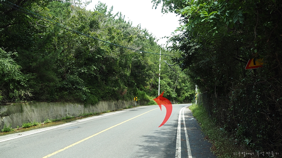 칠포해수욕장 바로 옆 파인비치호텔 뒷편의 칠포리로 넘어가는 포장도로를 따라 100여m 정도 걸어가면 좌측 산길로 올라가는 길이 보입니다.