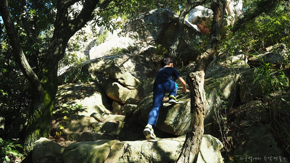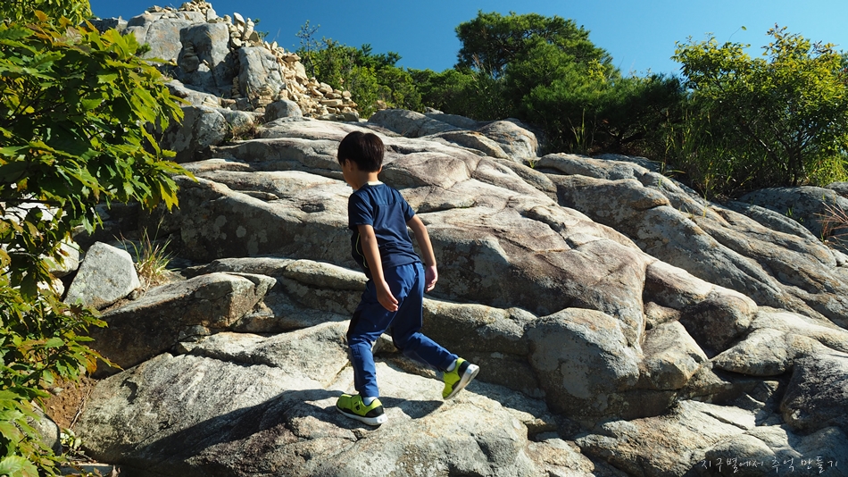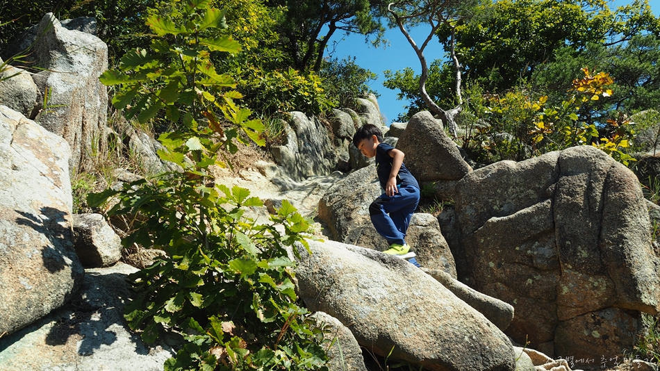 아무래도 아이들은 꾸준히 오르는것보담 이런 바위들이 있는 산을 좋아하여 신나게 오르내리며 하루 보냈네요.