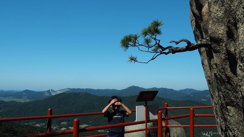조망이 상큼하게 내려다보이는 아찔한 절벽바위가 있는데 위험하여 약간 앞쪽으로 이동하여 인증샷.