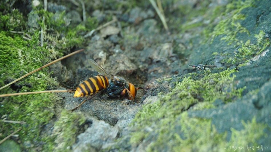 말벌 앞에 작은 곤충이 한마리 있는데 저게 자꾸 말벌 작업하고 있는 걸 집적집적 거리는데 말벌은 왕무시하고 지 할일만..