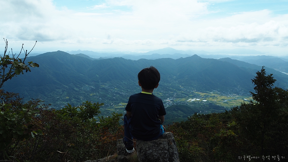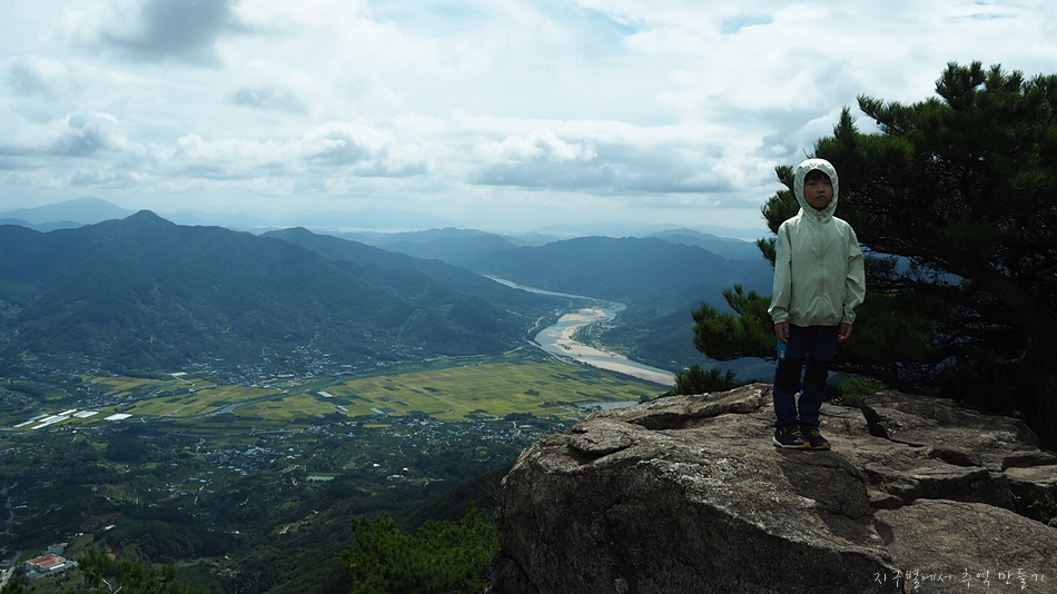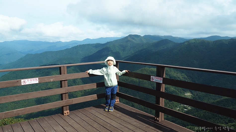 7세 지율군, 지난번 나랑 다녀 온 삼신봉을 배경으로 기념촬영. (삼신봉 산행기 : 이곳)