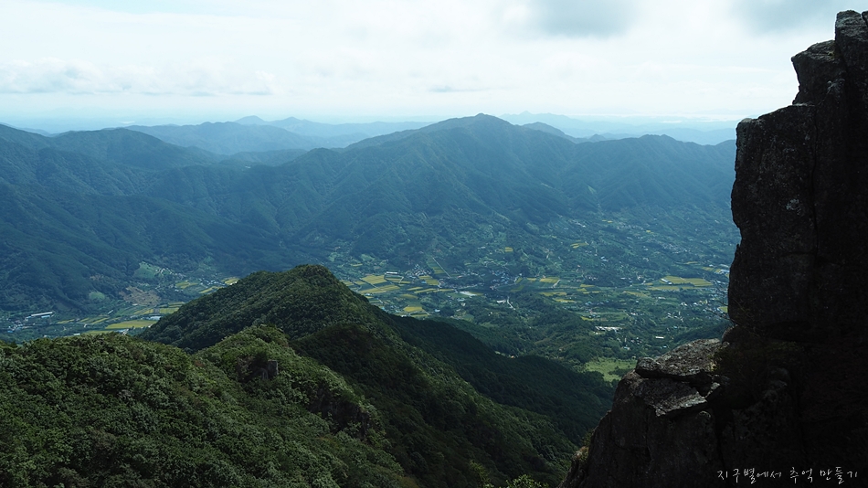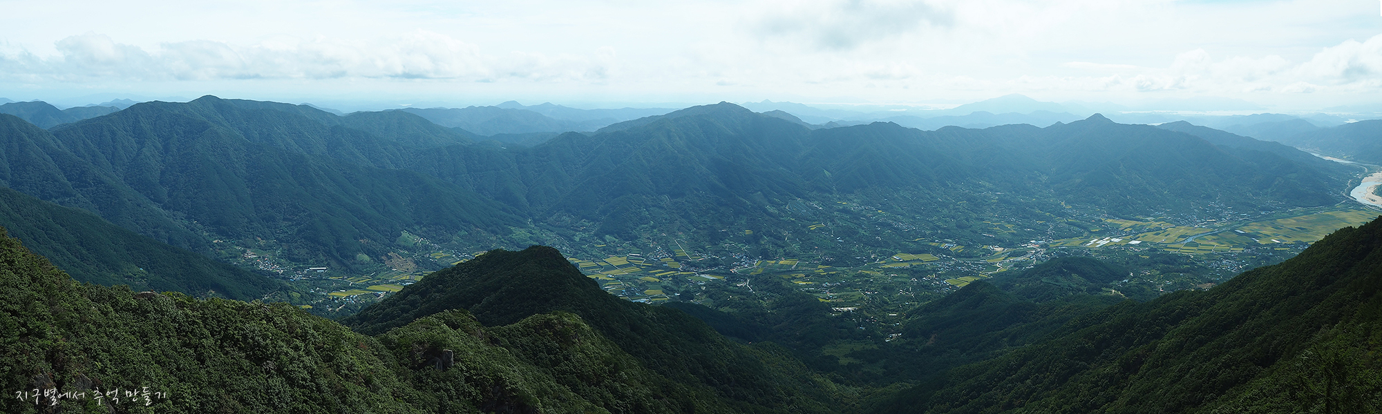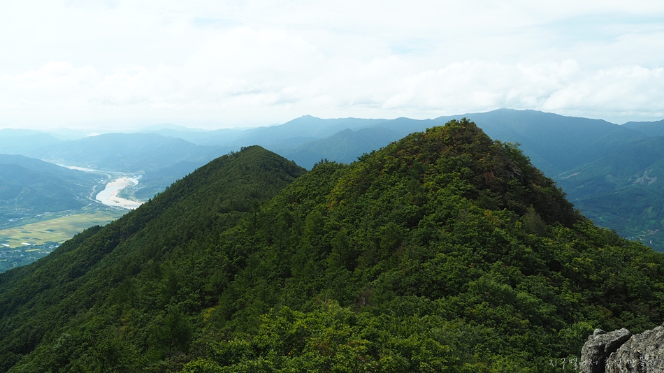 앞쪽으로 광양의 백운산이 보이고 우측으로는 구례가 멀리 보입니다.