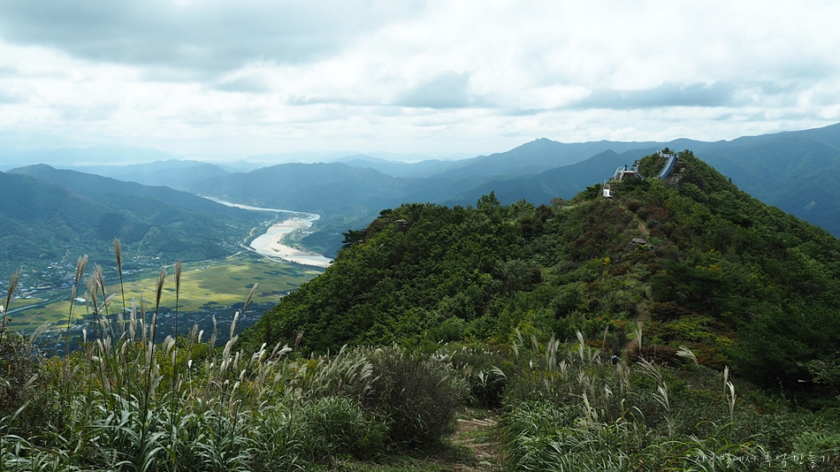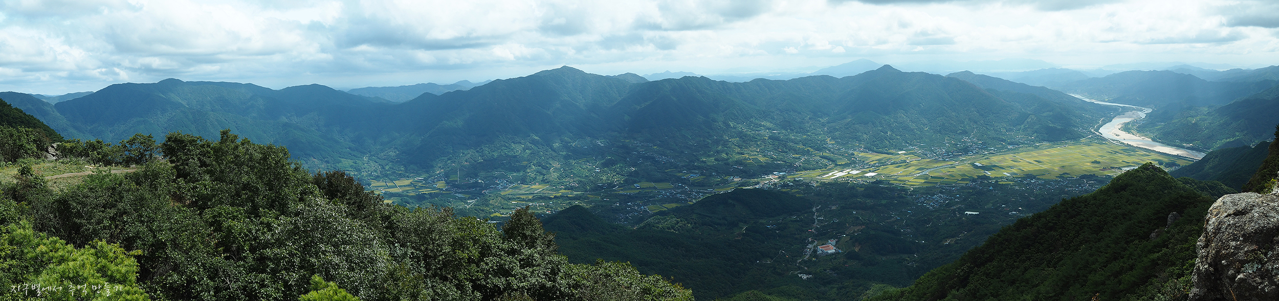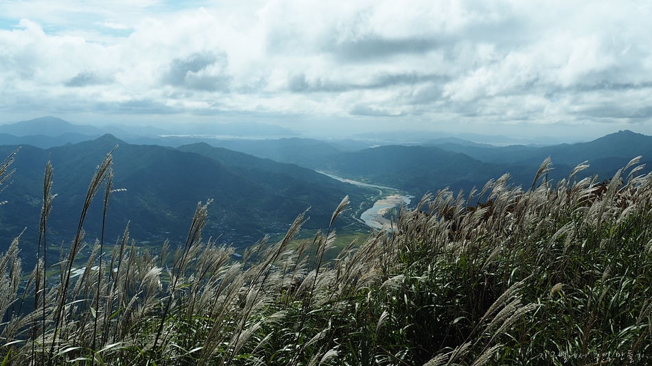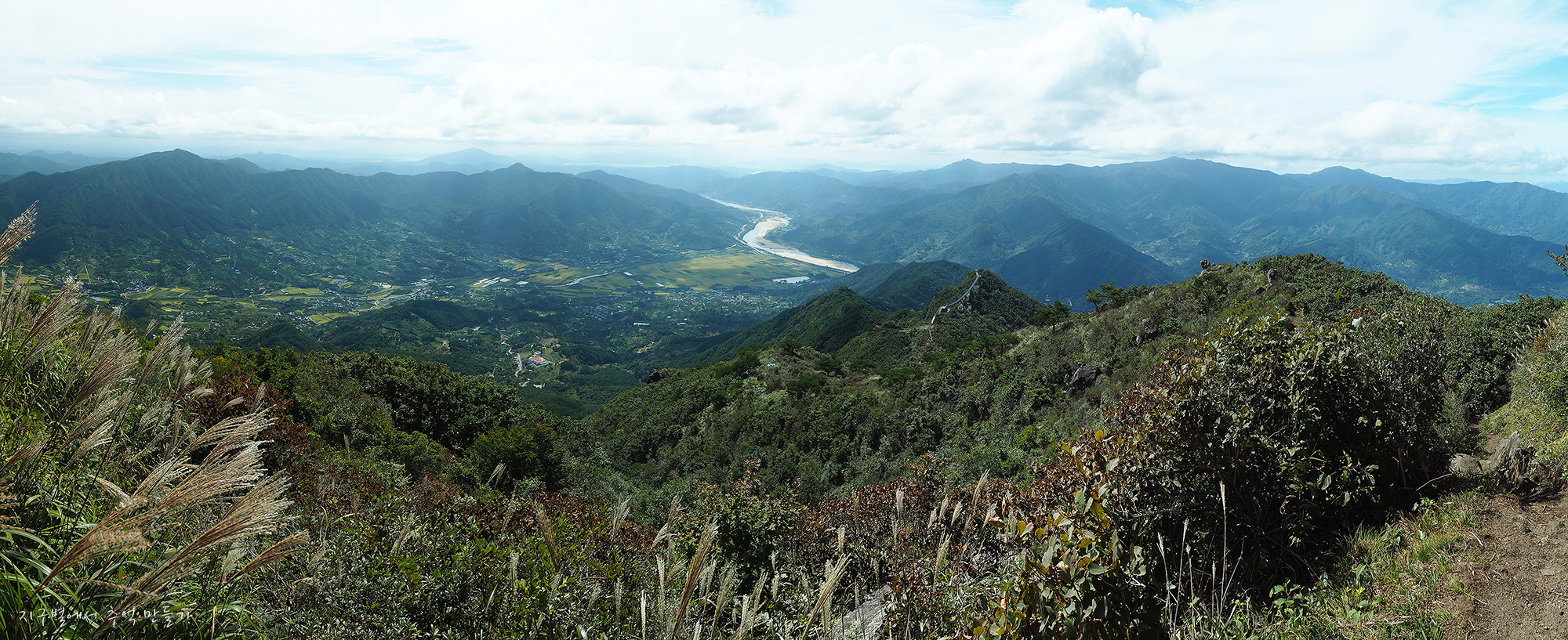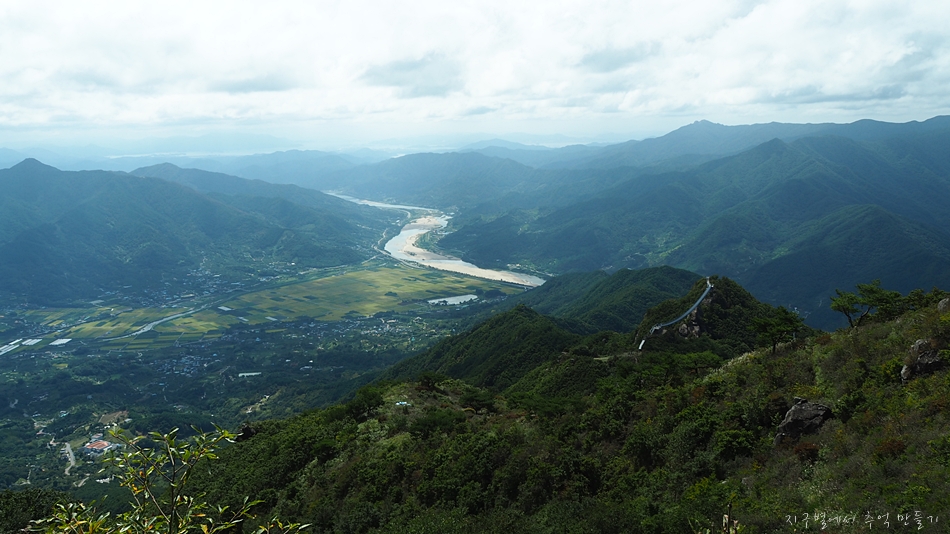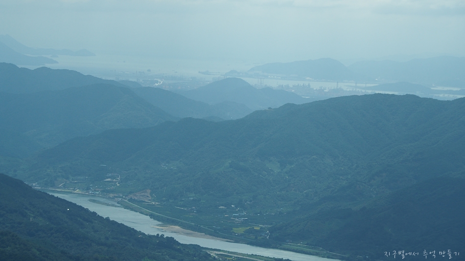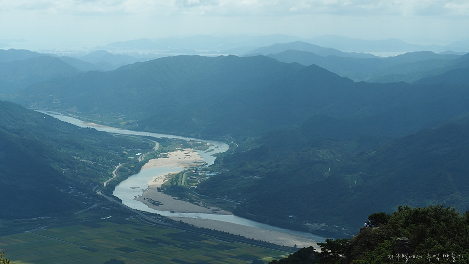 좌측이 섬진강 건너의 광양 백운산, 중앙에는 멀리 구례가 보이네요.