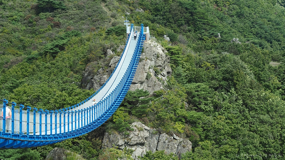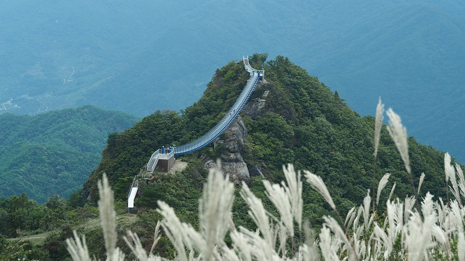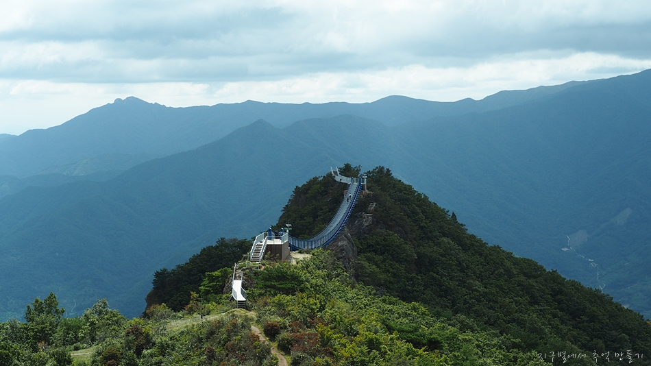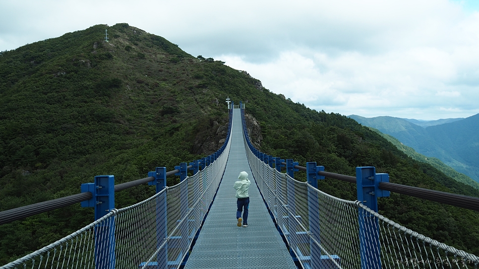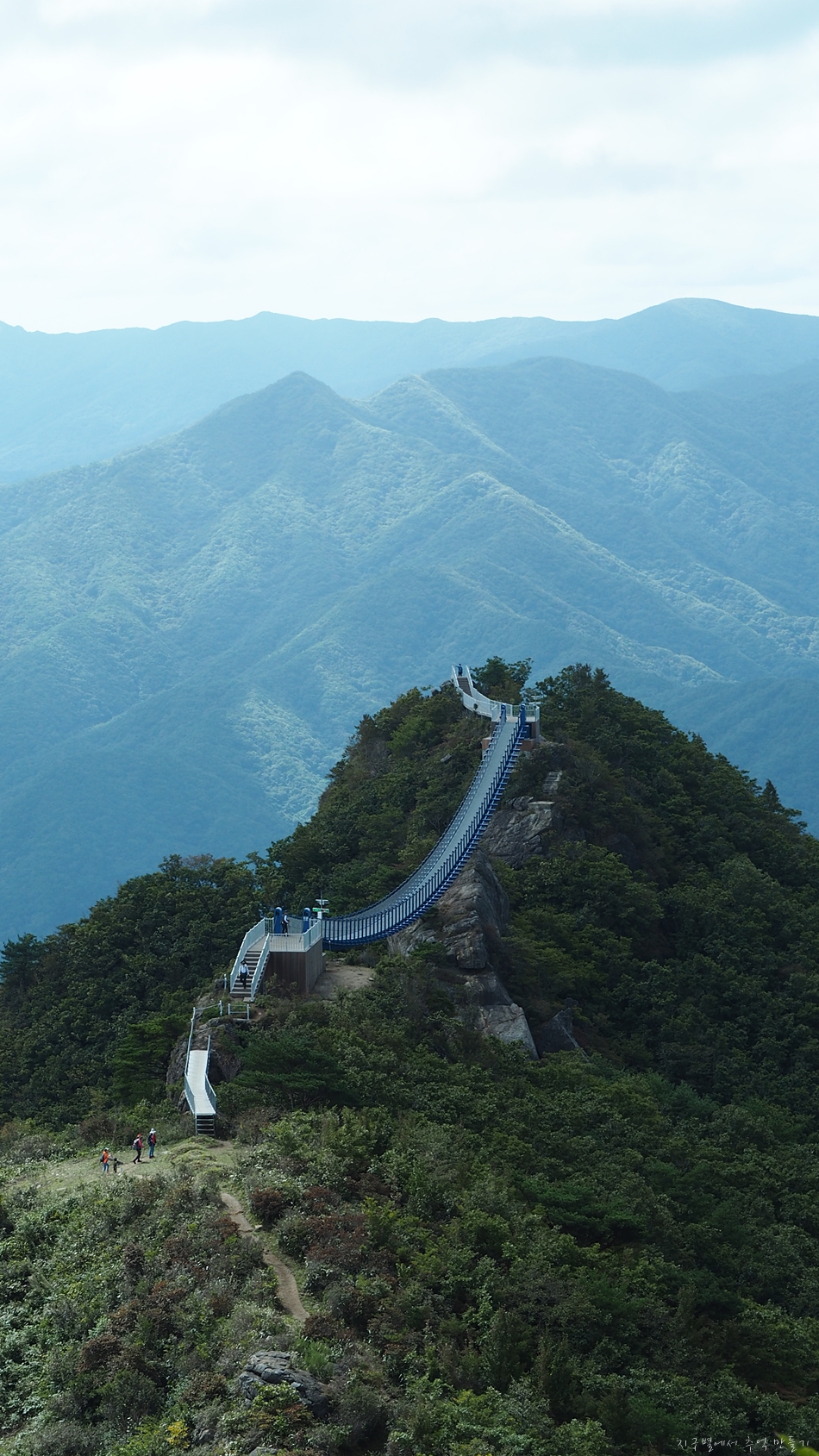 중간의 봉우리를 넘어서야 구름다리가 보인답니다.