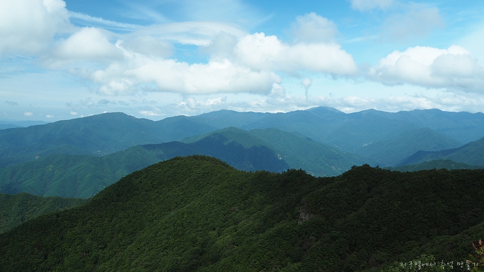 봉우리에 구름모자를 쓴 곳이 많네요.