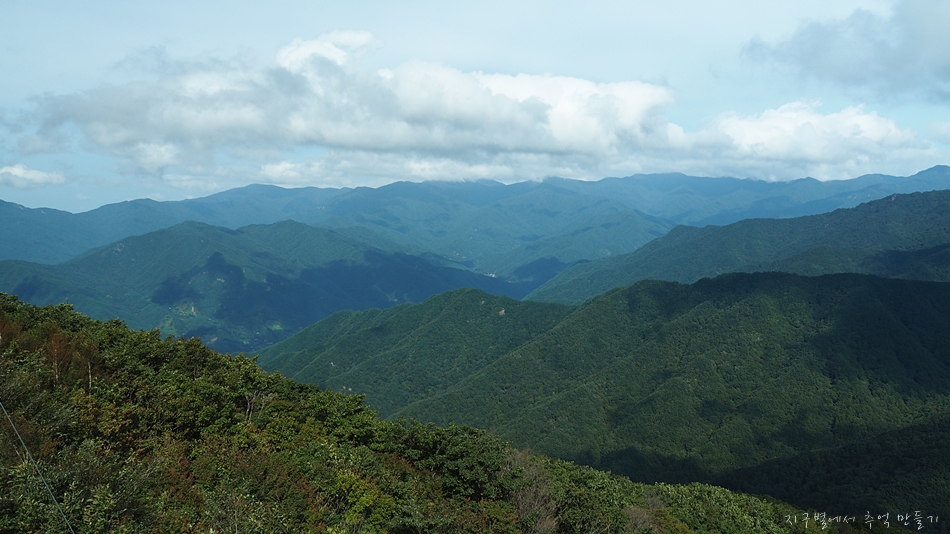 정상 능선에 해발 1000m가 넘는 봉우리 두 개가 의좋게 자리하고 있다고 하여 형제봉이구요.