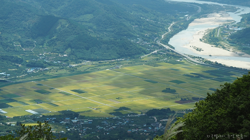 구름다리 인근에서 바라본 악양들판과 섬진강.