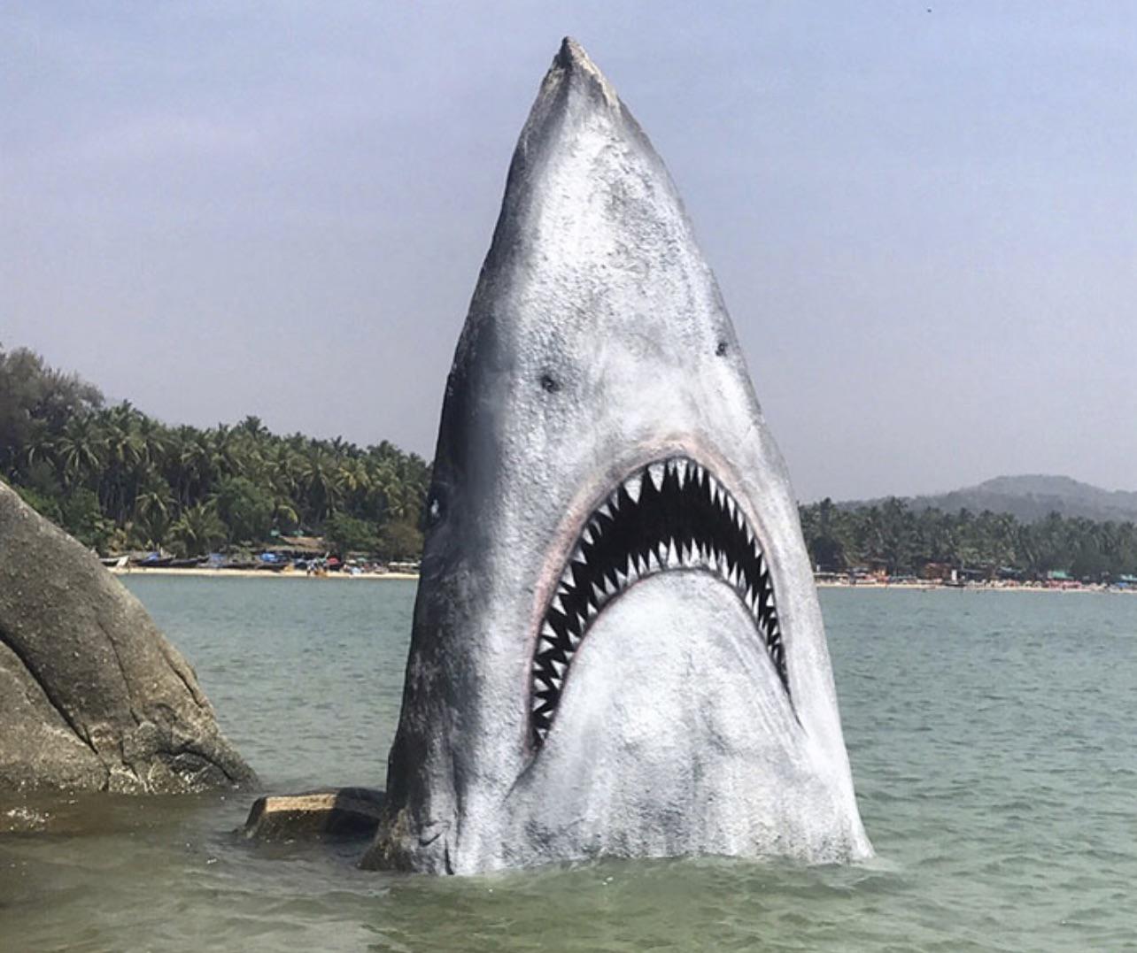 1. 해변의 바위를 상어로 바꿔놓은 예술가.