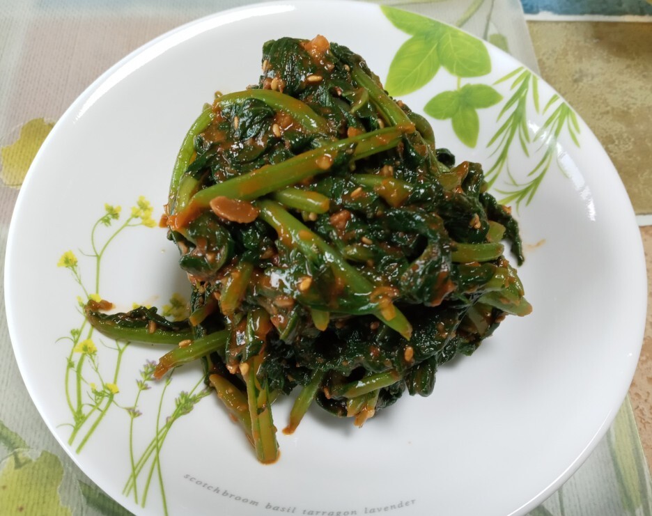 된장과 간장 마늘을 넣어 조물조물 무쳐서 나물로 만들었습니다.