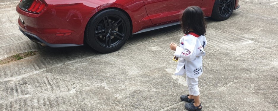 차에서 내리자마자.. 태권~ 하면서 발차기로 인사를 하는 당돌한 꼬맹이~