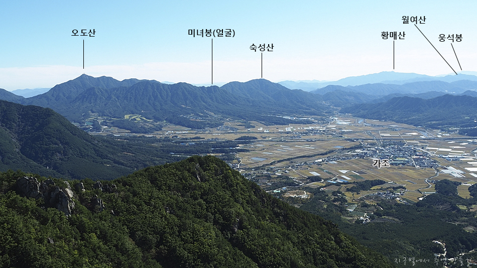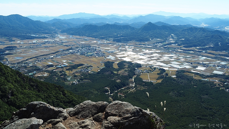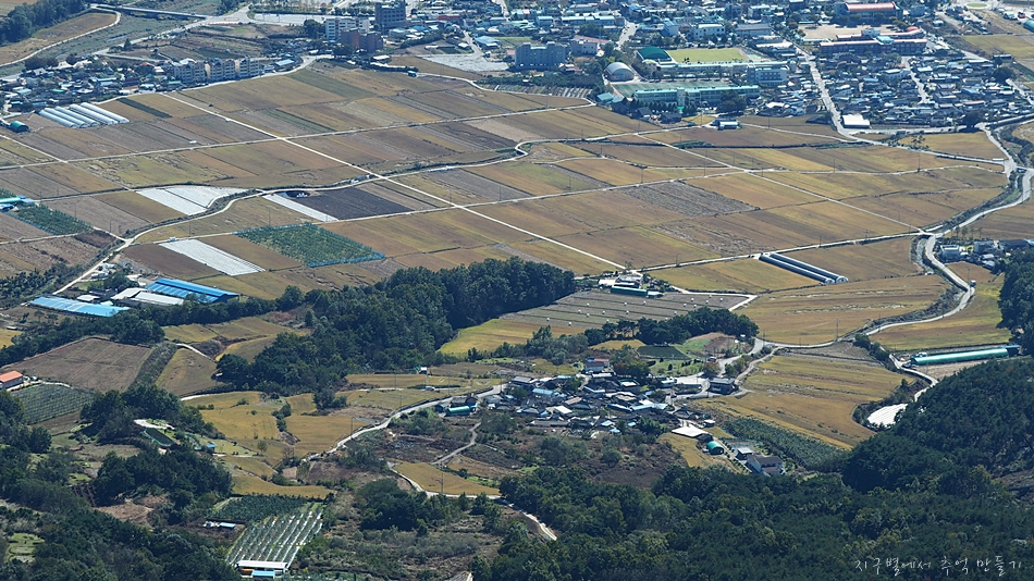 앞쪽에 별 볼일없는듯 보이는 박유산에 오르면 가조 들판이 정말 멋지게 내려다 보인답니다.