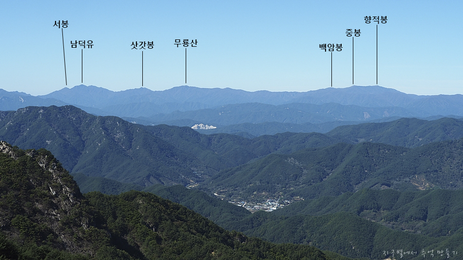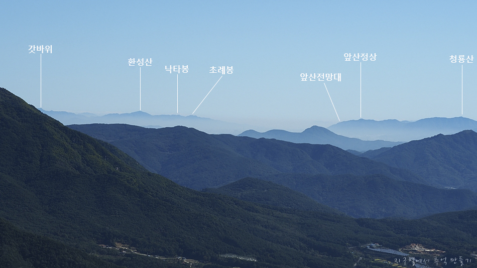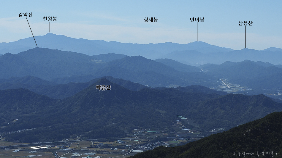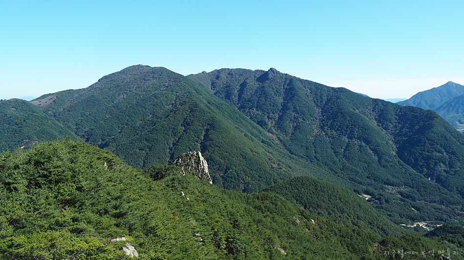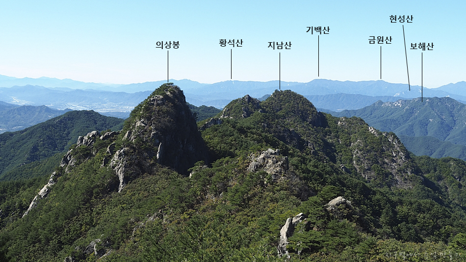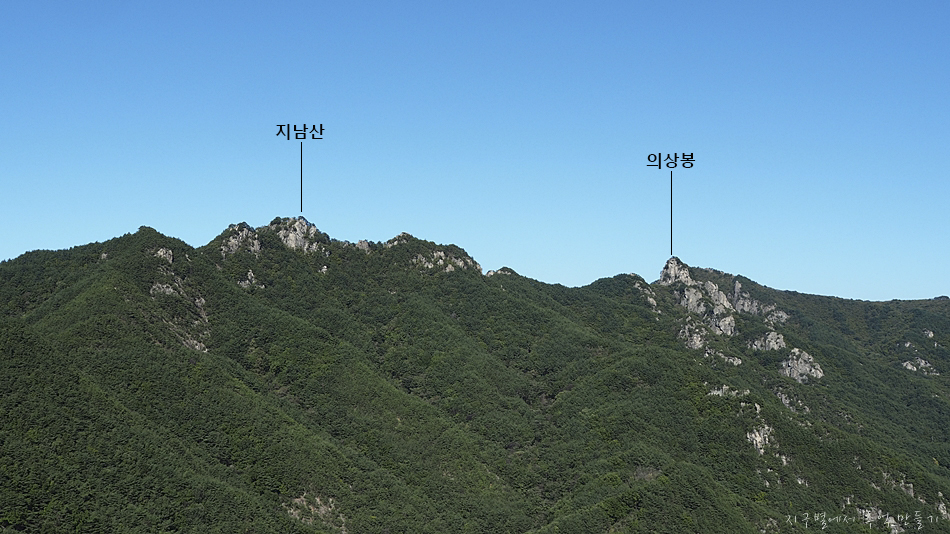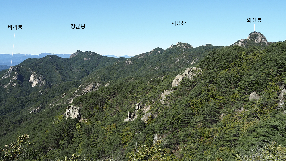 중간에 지남산과 건너편으로 장군봉이 조망 됩니다.