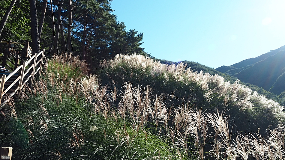 억새가 역광 햇살에 반짝입니다.