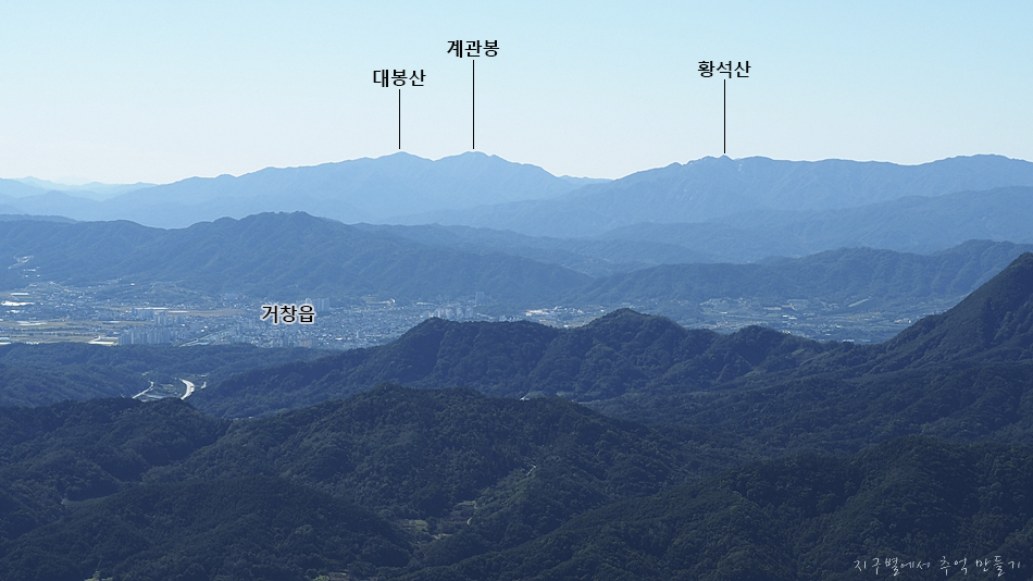 거창 감악산 뒤로 우뚝 솟아 보이는 지리산 천왕봉,