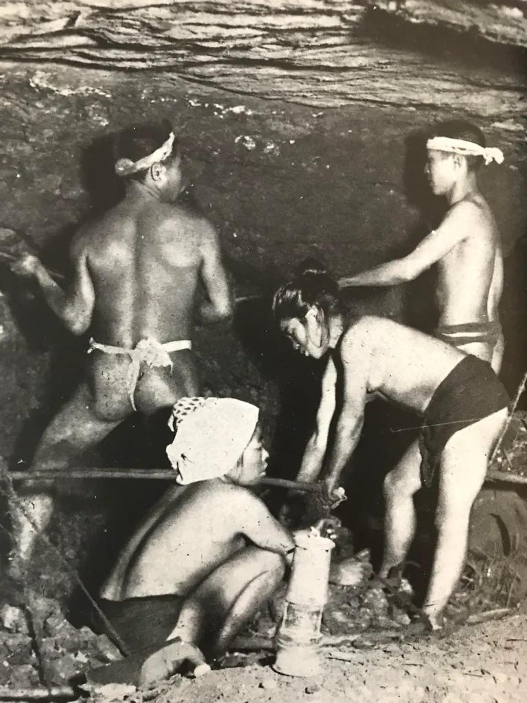 7. 일본 메이지 시대 탄광에서 일하는 남녀의 모습.