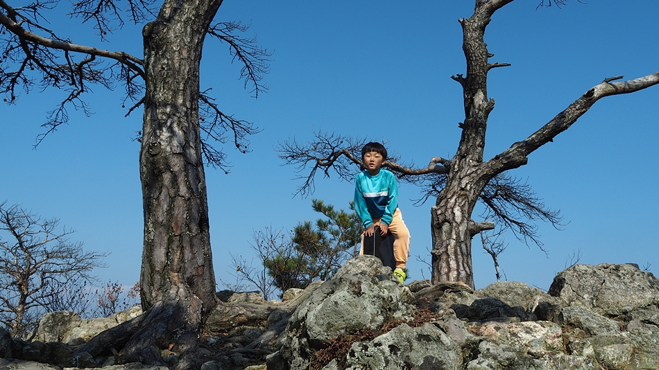 아이한테 다음부터는 정상석에 걸터오르면 안된다고 이야기합니다.