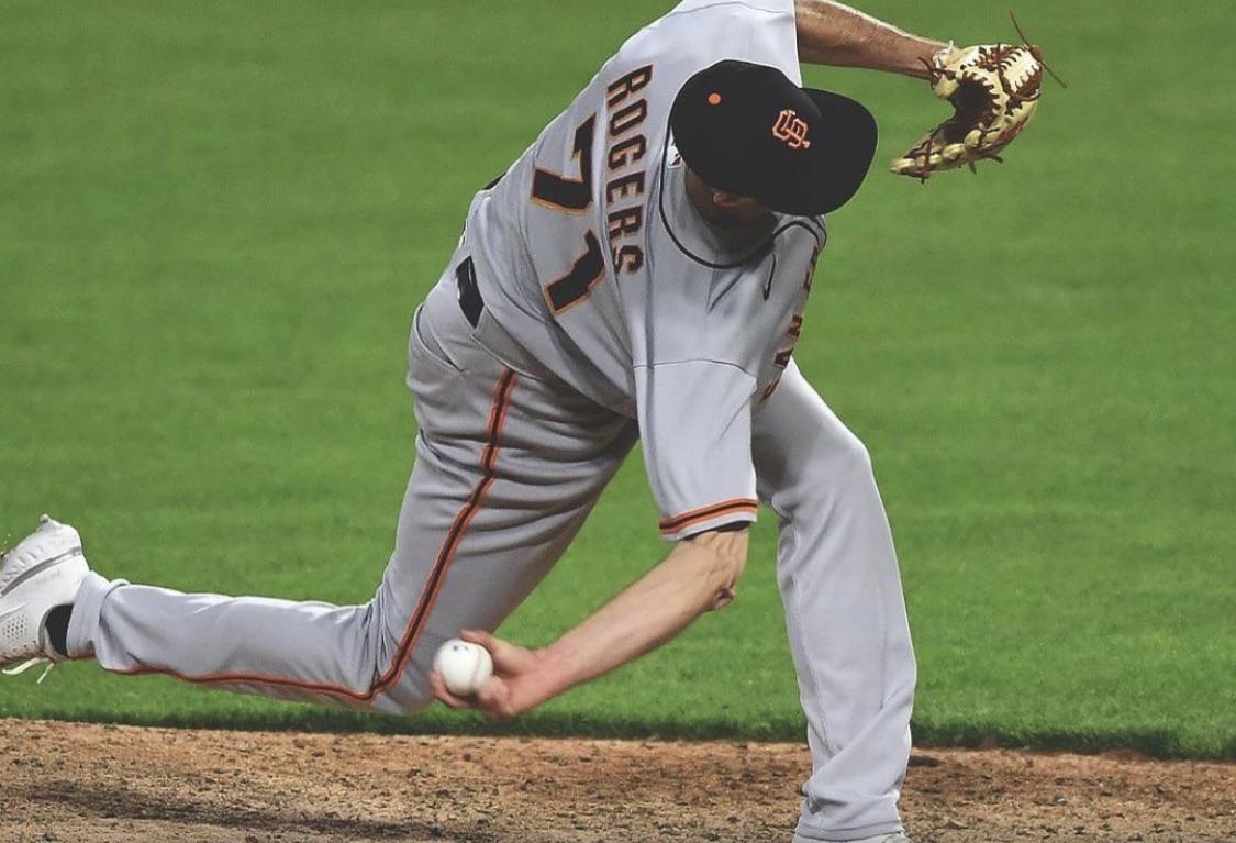 6. MLB 투수 타일러 로저스가 73마일(117km)의 슬라이더를 던지고 있는 모습입니다.