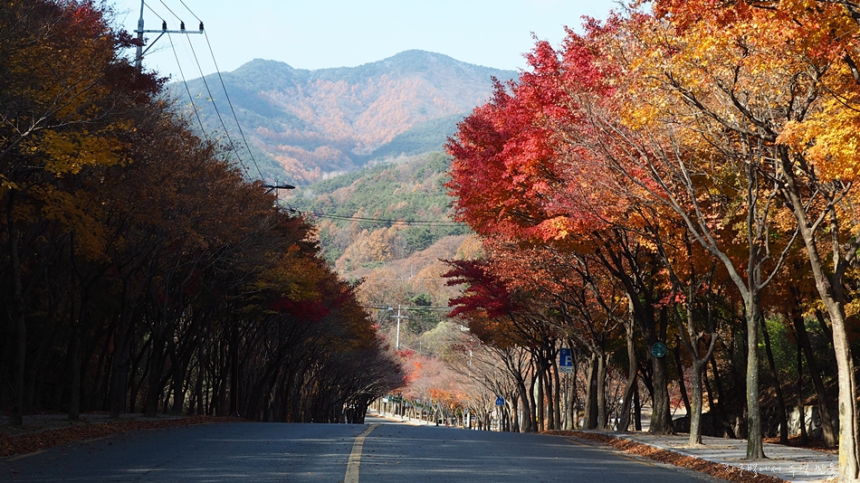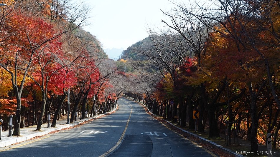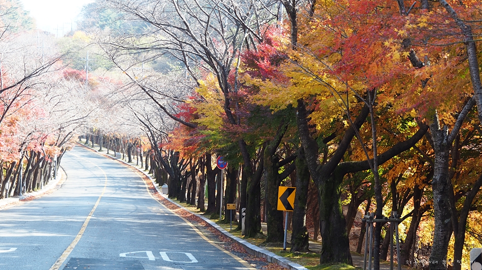 팔공산 송정동에서 동화사로 이어지는 팔공산로 주변에는 단풍나무와 왕벚나무가 2열 종대로 가로수로 꾸며져 있답니다.