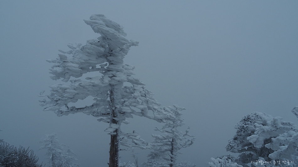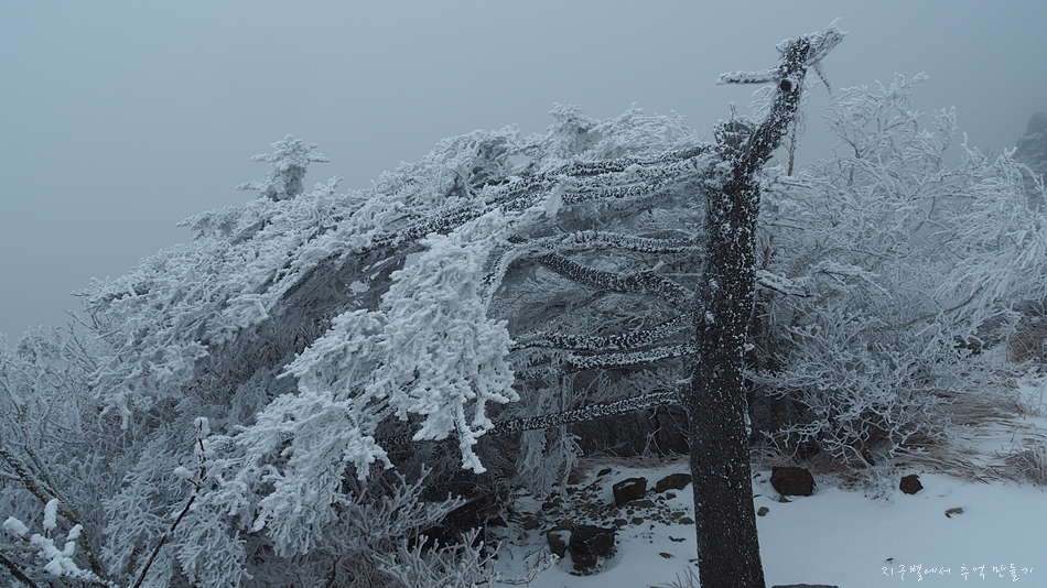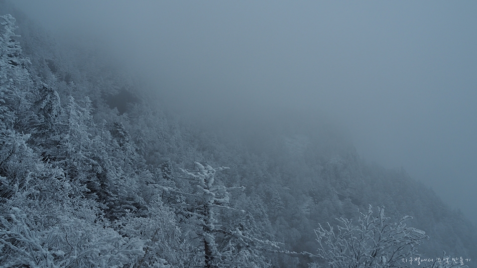 천왕봉에서는 차가운 북서풍이 몸을 가누기 힘들 정도로 마구 불어왔고요.