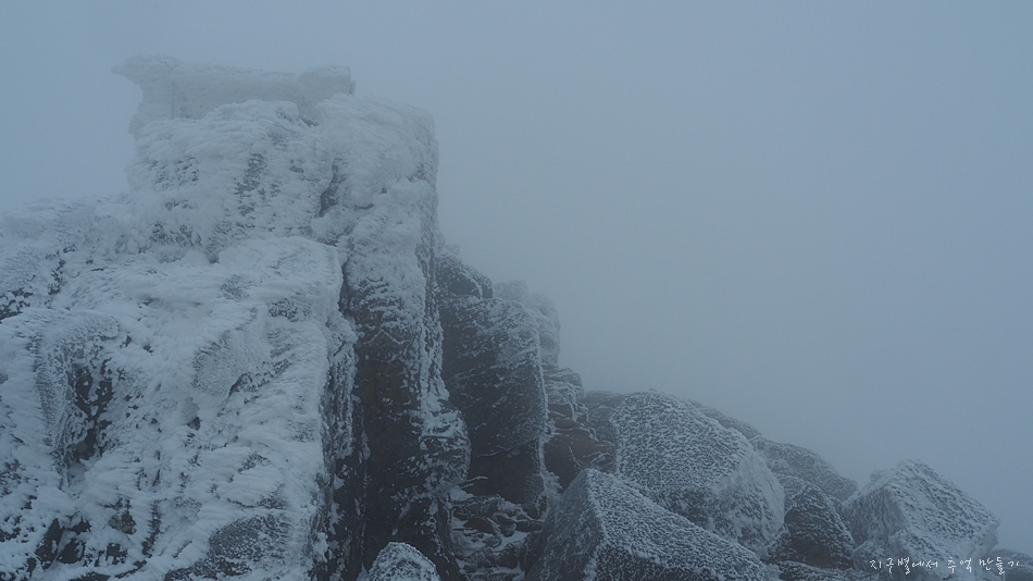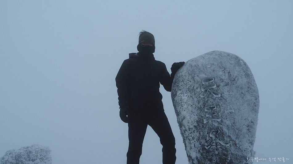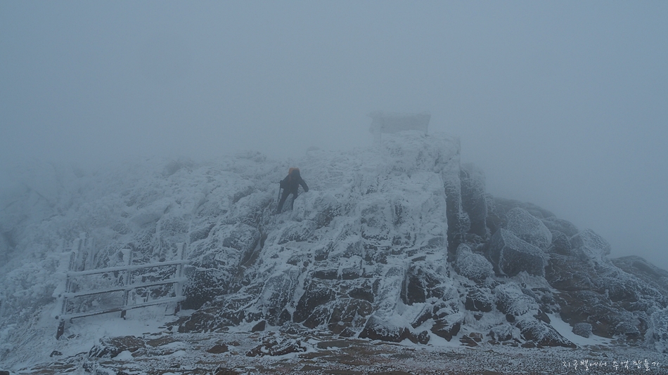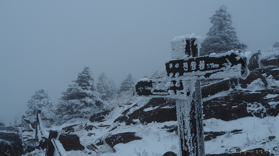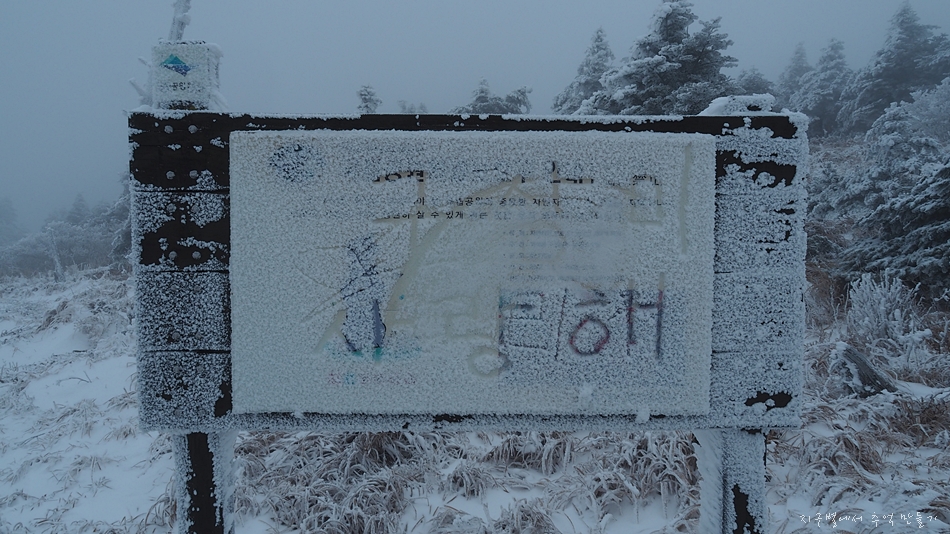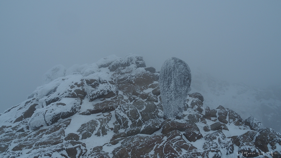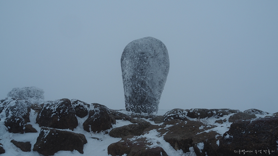 정상석이 꽁꽁 얼어 있습니다.