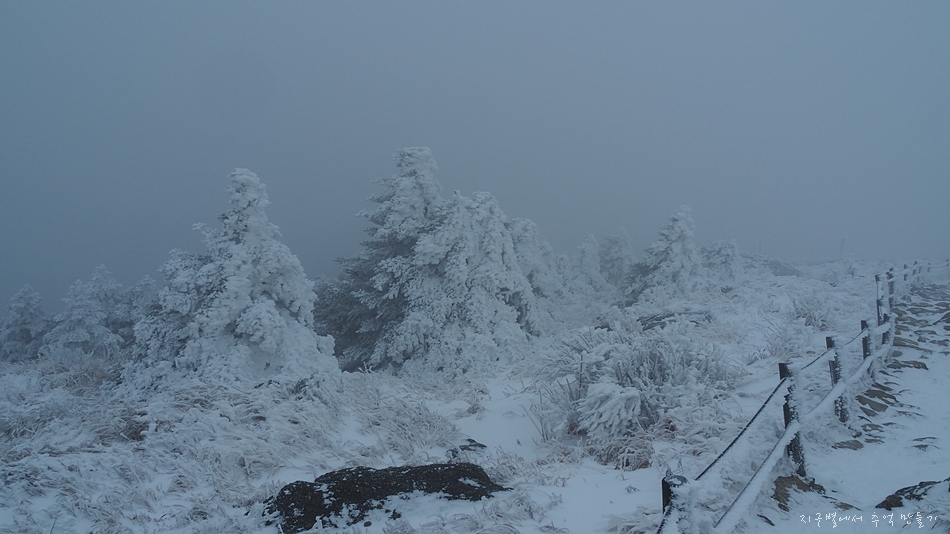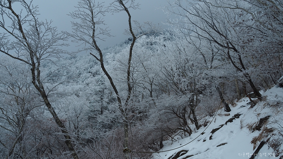 전날 밤에 눈이 살푼 내려 지리산 고지대는 완전 설국이 되어 있었습니다.