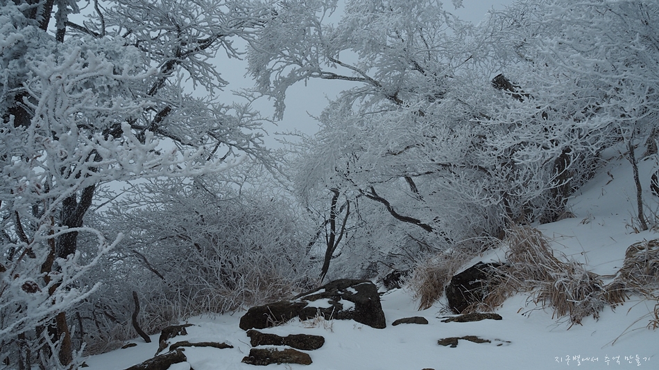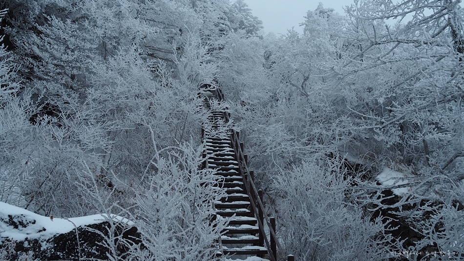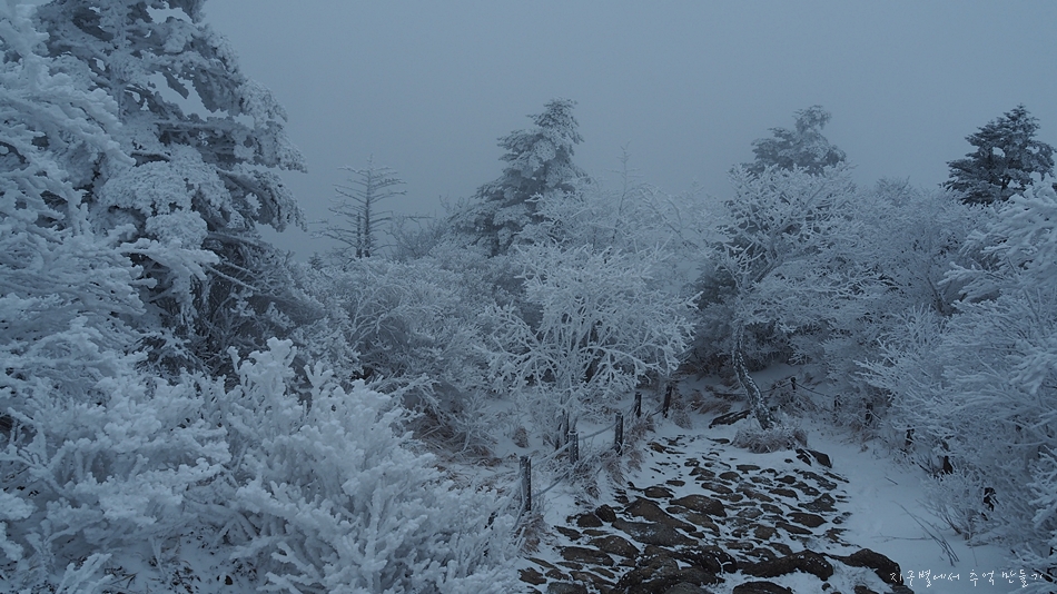 고지대로 올라갈수록 빙화(氷花)가 설화(雪花)로 변하기 시작하면서 보기 힘든 눈꽃이 사방 천지에 피어 있어 정말 아름다운 눈 구경을 했네요.