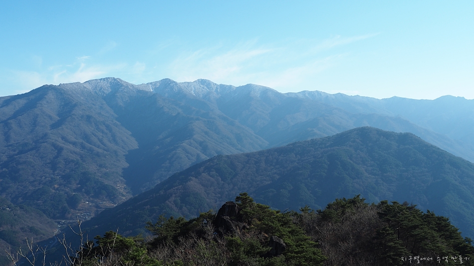 천왕봉 앞에 좌우로 와불산과 삼정산이 있구요.