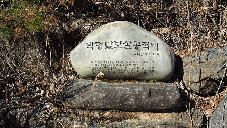 주차장 옆 산비탈에는 6.25로 폐허가 된 암자를 다시 부흥시킨 박명달 보살의 공적비가 자그마하게 세워져 있네요.