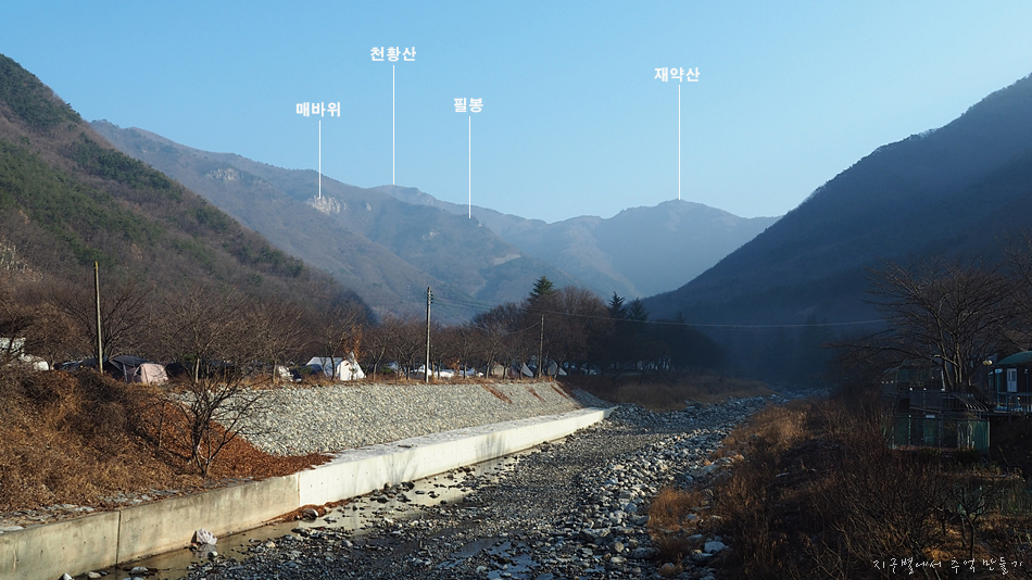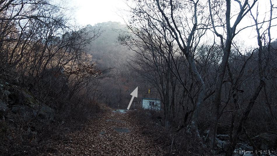 위 화살표 방향으로 개울을 건너 산길을 따라 올라가면 됩니다.