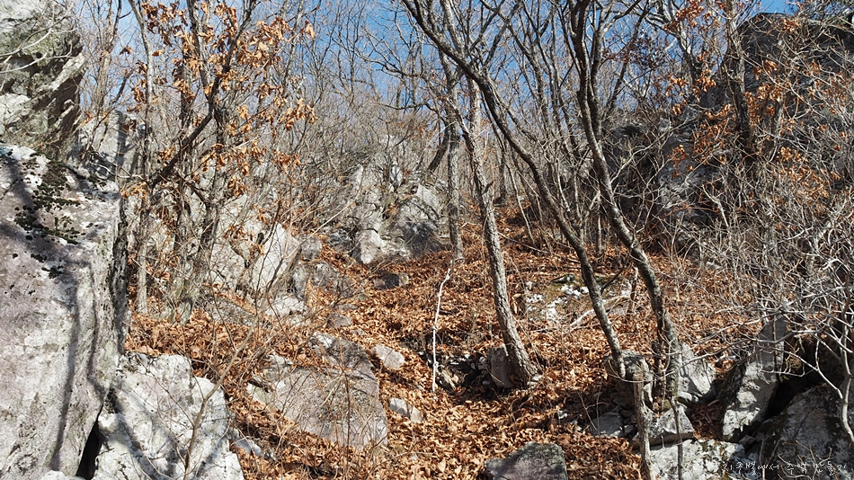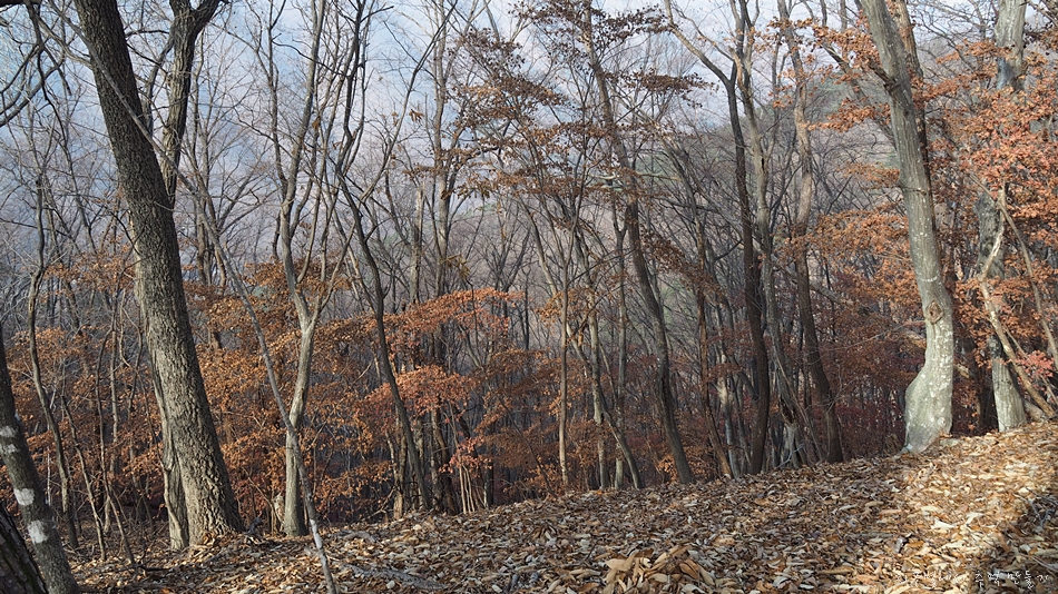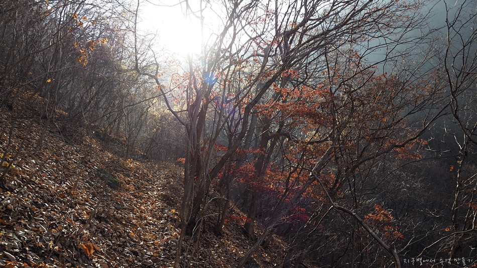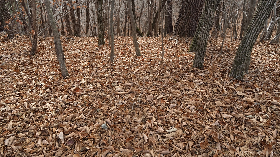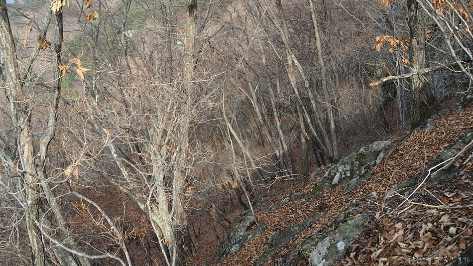 참나무가 많은 지역이라 온통 갈낙엽으로 뒤덮여 하산길은 거의 눈길과 마찬가지로 미끄러웠답니다.