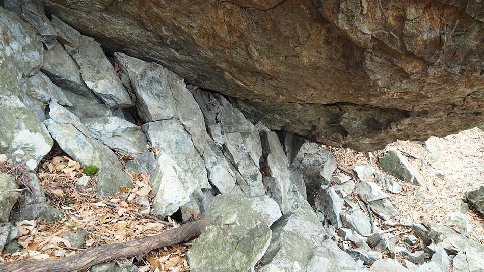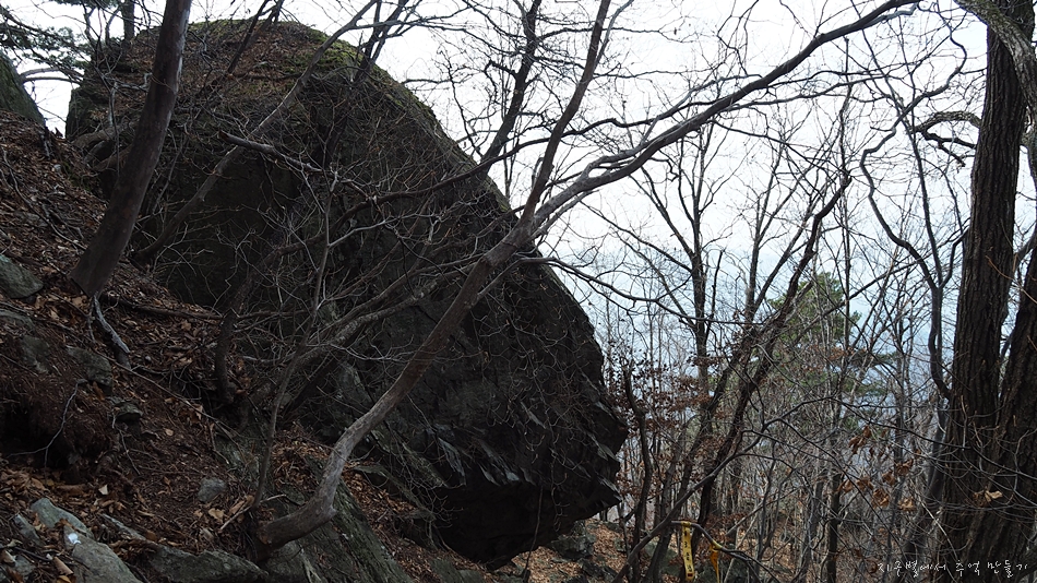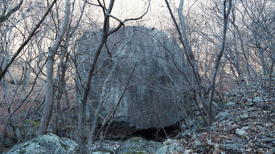 사진에서는 구분이 되지 않는데 작은 계곡을 꽉 채우는 엄청난 크기의 바위입니다.