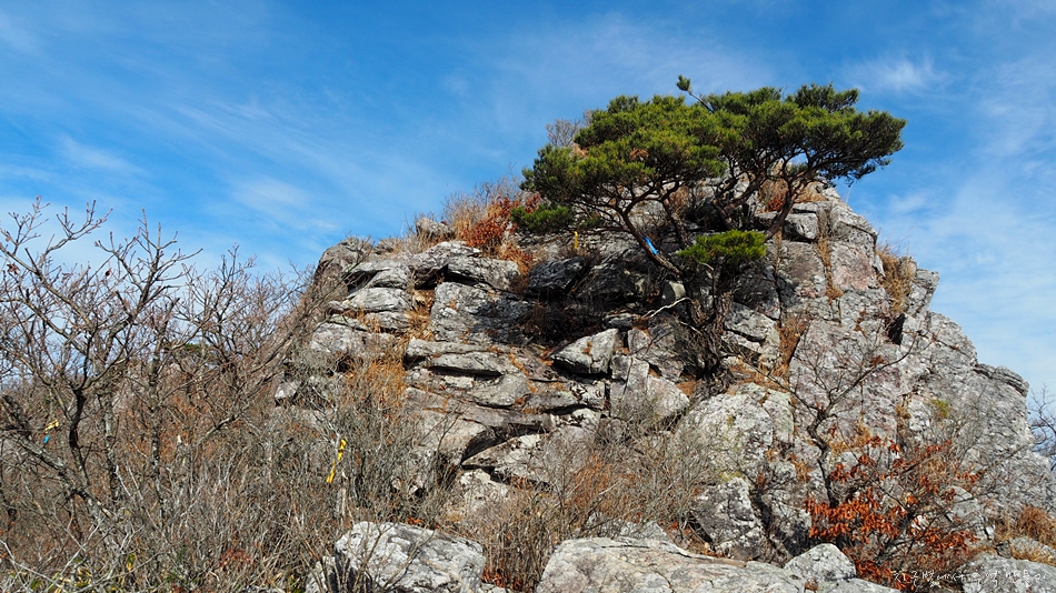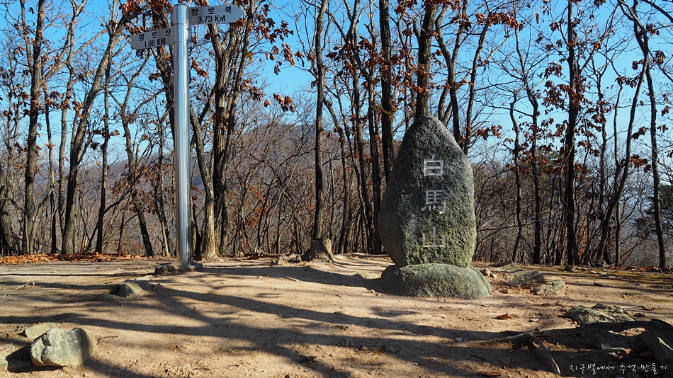 뒷편으로 백마산 정상의 절벽 암릉 구간이 보이네요.