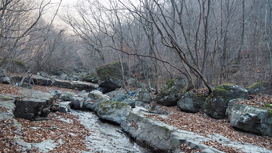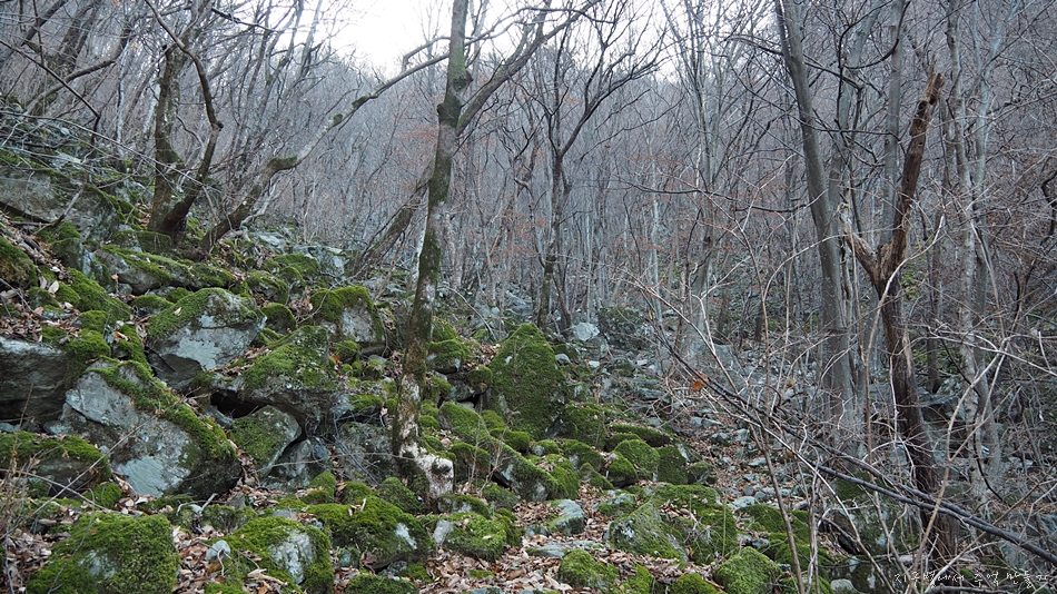 암석이 계곡에 잔뜩 깔려있는 곳으로 올라갑니다.