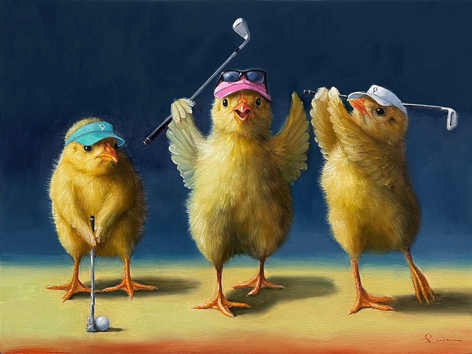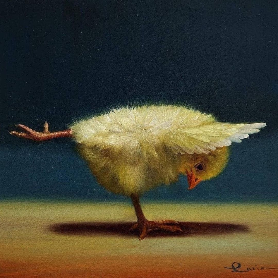소개하는 작품의 제목도 약간 유치원스러운 "요가하는 병아리(Yoga Chicks)"입니다.